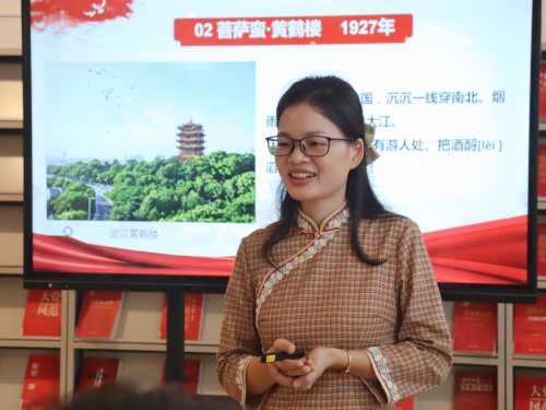 刘老师首先介绍了毛泽东作为革命家和诗人的双重身份,说明其诗词不仅是文学创作,更是党史的生动记录。讲授中,她通过现场与学生一起朗诵每首诗词为导入,深入剖析了《沁园春·长沙》《菩萨蛮·黄鹤楼》《西江月·井冈山》《忆秦娥·娄山关》《七律·长征》《七律·人民解放军占领南京》六首诗词,让在场师生感受到了毛泽东诗词中蕴含的革命精神和历史价值。从《沁园春·长沙》中对革命形势的深刻思考,到《七律·长征》中对长征胜利的豪情抒发,再到《七律·人民解放军占领南京》中对中国人民解放军彻底打垮国民党反动派的信心、决心的充分表现,每首诗词都如同历史的丰碑,记录着中国共产党的光辉历程,这让大家仿佛能够跨越时空,感受到了革命先辈的豪情壮志。讲座最后,刘老师鼓励新时代大学生要以“只争朝夕”的精神,练就过硬本领,迎接新时代的挑战。