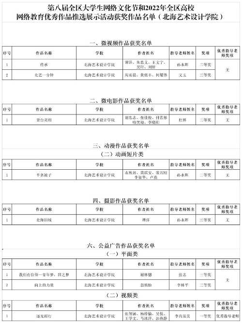 喜报|北海艺术设计学院在第八届全区大学生网络文化节和2022年全区高校网络教育优秀作品推选展示活动中喜获佳绩