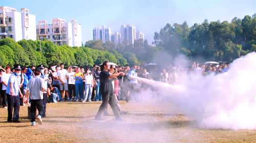 现场师生在了解了灭火器的摆放位置、干粉灭火器的正确使用方法和技巧之后,在工作人员的指导下,在场师生纷纷参与学习灭火器的科学、规范实操,提高了师生的防火灭火能力。