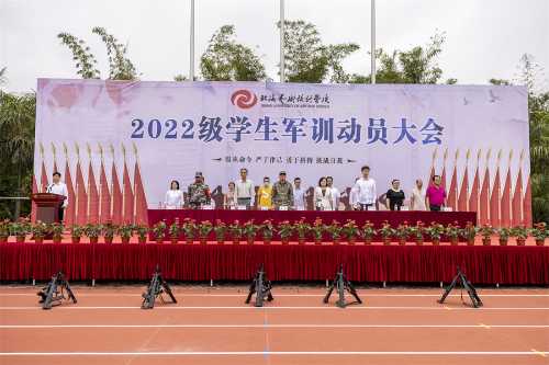 北海市海城区人民武装部政委王鑫在讲话中阐述了军训的重要性,通过军训进一步增强学生的国防知识和军事技能,引导学生在军事化管理中培养良好的生活学习习惯,在感悟军人使命、体验部队式生活中加强使命担当,激发保家卫国的责任感,也在军训后变得更加勤奋坚强。他希望同学们能端正参训态度,保持高昂热情,展现迷彩在身的无上荣光;保持坚韧毅力,刻苦认真训练,培养永不言弃的精神高地,服从教官管理,严格自身要求,养成令行禁止的优良作风;团结奋斗、加强互帮互助,打造坚强有力的和谐集体;以此次军训为契机,以中华民族伟大复兴为己任,做一个自信阳光、善良正直、勇敢睿智的人,积极传播正能量,为社会贡献力量。他还对全体军训教官提出要求:要准确把握、严密组织、稳妥推进,在严格要求中科学施训,在要求效果中注重过程,在训练内容中保障安全。