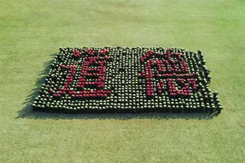 1200人组成的“倒计时”阵营,响亮的口号、整齐划一的动作,以时间为主线,历史事件一一串联,图案快速变化,场面让人震撼、赞叹。