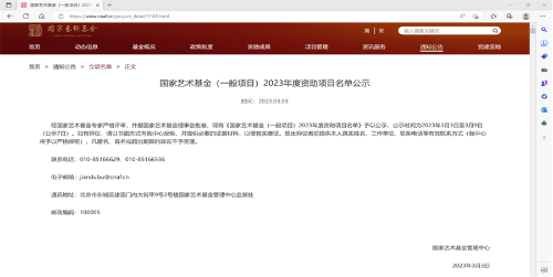 3月3日,国家艺术基金管理中心发布《国家艺术基金(一般项目)2023年度资助项目名单公示》,我校美术学院教师陈建江获青年艺术创作人才项目(中国画创作)立项,这也是我校唯一在获得此类立项的项目。