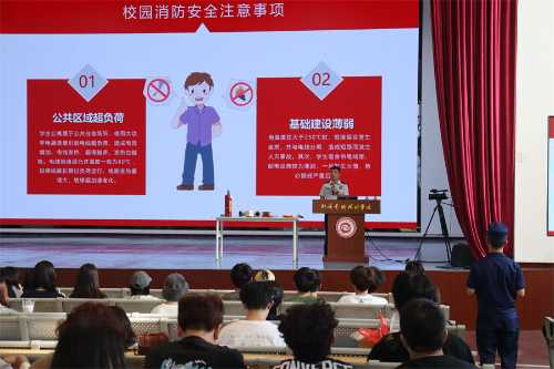 消防演练前,学校副校长刘朝雄作动员讲话。他表示学校组织消防演练,是贯彻习近平总书记“人民至上,生命至上”的指示精神,是为了提醒大家防患于未“燃”,增强消防安全意识,提高自救互救能力。他要求参演师生在演练中做到:一是认真听讲、仔细揣摩、积极参与、用心体会,真正做到学用结合,达到提升消防意识和自救互救能力的目的。二是始终贯彻“安全第一”的底线,做到服从命令听指挥,不拥挤、不打闹,要以饱满的精神、积极的姿态,有条不紊地投入演练之中。三是要求同学们要将学到的消防知识、自救互救技能传导给舍友、同学、家人和朋友,为提升全民消防意识贡献一份力量。