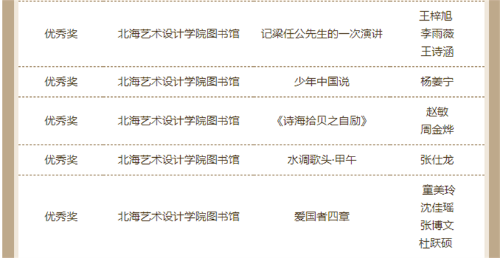 近日,由天津市全民阅读活动办公室、天津高等学校图书情报工作委员会、江苏省高等学校图书情报工作委员会主办的“品读梁启超 阅读创作大赛”的活动线上发布了获奖名单。我校学生作品征文类获得二等奖1名、优秀奖2名;书画类获得一等奖1名、三等奖2名、优秀奖6名;视频类获得一等奖1项、二等奖1项、三等奖4项、优秀奖5项。我校图书馆被评为“经典推广先进单位”“优秀组织单位奖”,学校教师喻广林、熊东等获优秀指导老师奖。