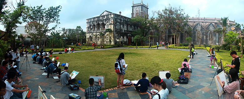 涠洲岛是中国国家地质公园、国家4A级旅游景区,被称为中国最美的十大海岛之一。岛上植被茂密,风光秀美,尤以奇特的海蚀、海积地貌,火山熔岩及绚丽多姿的活珊瑚为最,素有南海“蓬莱岛”之称。清代同治年间的哥特式建筑天主教堂,得天独厚的鳄鱼火山口地质公园、风光秀丽的石螺口海滩和五彩滩等,这些自然、人文景观为我院学生的艺术写生提供了丰富多彩的教学资源宝库。十多年来,我院一直把涠洲岛做为我们教学写生的重要基地。