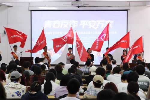 启动仪式后,现场开展了一场精彩的反诈知识大讲堂。反诈民警针对高校学生群体特点,结合案情分析、图片展示等方法,为学生们讲解了校园内频发的电信网络诈骗类型以及防范手段,为广大学生送上一份精彩且”干货满满”的反诈“大礼包”。同时,本堂课也最大限度地提高全体反诈青年志愿者的宣传动员能力,为全民反诈燃起星火燎原之势。