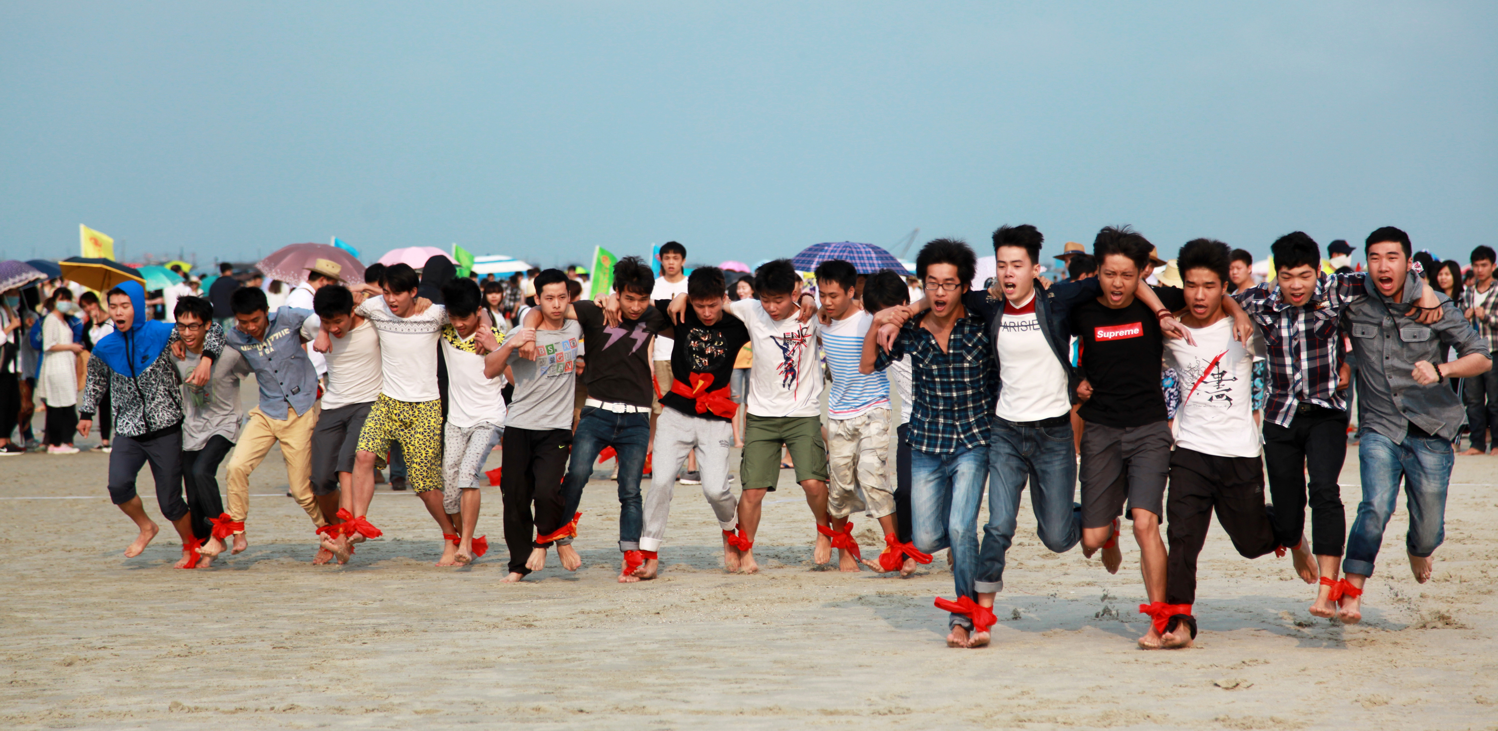 伴随一声枪响,全院师生迎着朝阳积极奔赴各个项目竞赛场地,开启朝气蓬勃的一天。本次沙滩运动会除了安排有8×50米迎面接力,排球等传统竞技比赛项目之外,还安排了拔河、六人七足、笨猪跳等趣味竞技项目。各班参赛队伍奋力拼搏、配合默契,在各个项目中尽情展现青春力量。六人七足和笨猪跳比赛中,队员们考默契、拼团结,努力将步伐协调一致;8×50米迎面接力赛场上,队员们克服沙滩上举步维艰,奋力向前奔跑,传递掌心的力量;拔河比赛中,各班参赛队员伴随响亮的口号,卯足了劲、憋红了脸争夺绳子上象征胜利红布条;沙滩排球赛强手倍出,一个个跳跃的身姿展现着激情与力量。