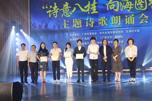 5月20日晚,由广西作家协会、市委宣传部、市文联主办的第八届广西花山诗会“诗意八桂 向海图强”主题诗歌朗诵会暨广西年度诗人颁奖会在我校举行。