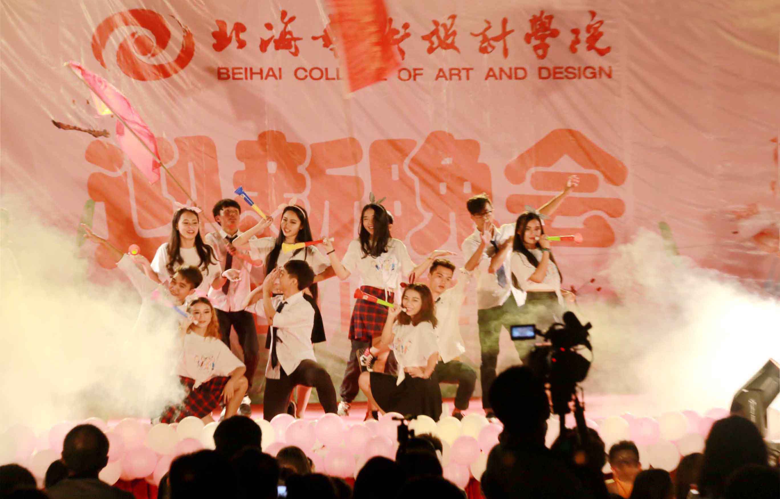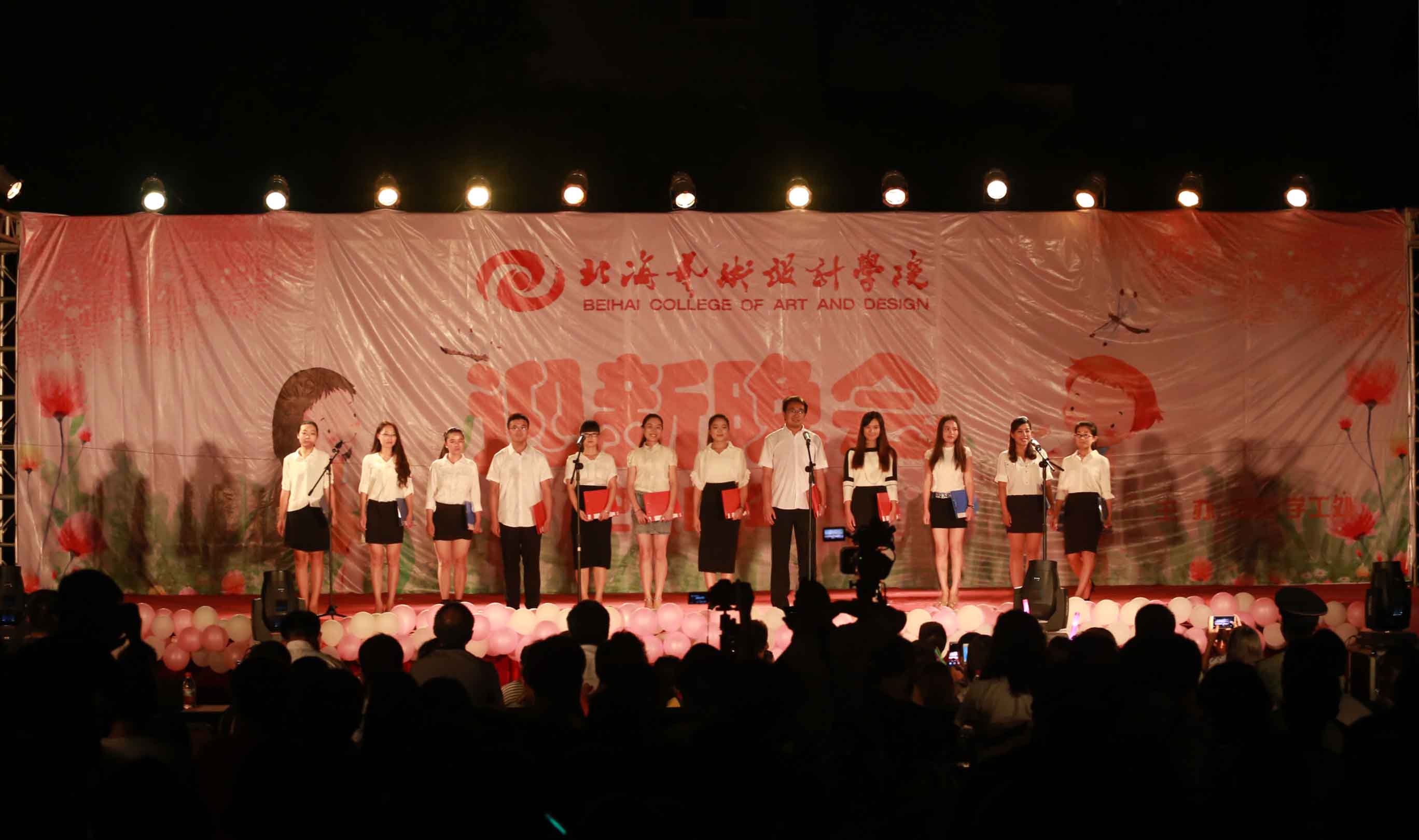 当晚,现场灯火璀璨、人头攒动。随着强劲的音乐响起,晚会在我院舞蹈团演员激情的开场舞《欢迎新同学》中拉开了帷幕,精彩的节目为观众呈现了丰盛的视听盛宴。来自15级班主任老师的诗朗诵《相逢是首歌》将晚会推向了第一个高潮,声情并茂的朗诵是班主任老师对学生们爱的呼唤;大二学长的《春天里》唱出了北艺学子不断追求梦想的渴望;环艺本科1513班的民族舞《追梦》激扬着青春的风采;艺教1501班《祖国之恋》的表演者仿佛是一群水的精灵,把自然移上了舞台陶醉了人心;街舞社动感的《dancing for you》,舞出了对生活的热爱,给观众带来了强烈的视觉冲击和听觉震撼。整场晚会精彩不断,高潮迭起,赢得台下阵阵掌声,欢呼声一浪高过一浪。15级动漫专业学生的合唱《爱我中华》为本场晚会划上了圆满的句号,歌声中饱含着同学铿锵自信和对祖国的无限热爱,绽放着青春与梦想的光芒。