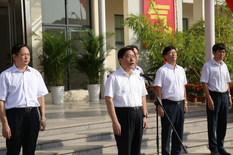 图五:自治区党委常委、市委书记、市人大常委会主任王可宣布新校区正式启用