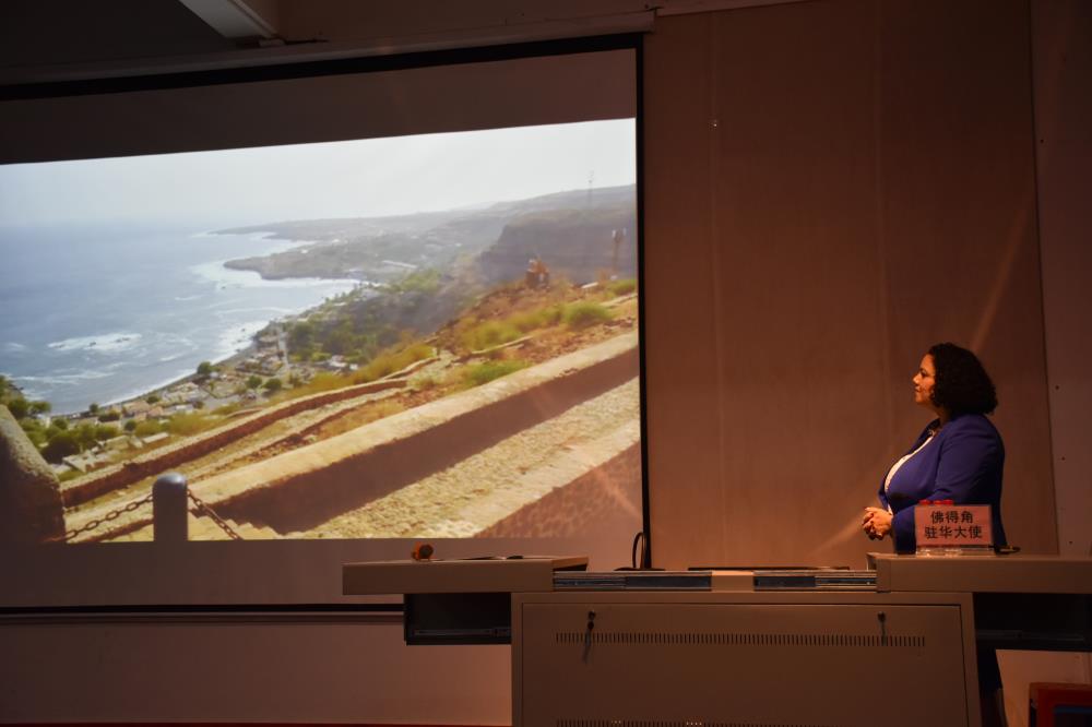 讲座一开始,大使幽默风趣的话语就引来了同学们的阵阵掌声,她向大家介绍了佛得角的地理位置和基本情况,重点强调了高等教育的发展前景。在介绍佛得角民族的形成过程后,她指出,今年是佛中建交40周年,马上两国就要步入第41个双边关系友好发展的年头,中国在佛得角的发展道路上给予过很多帮助,正因如此,佛得角与中国的外交友谊非常深厚。随后她向大家分享了一些图片、视频来更直观地展示自己的国家以及介绍佛得角大学的发展方向及目标任务。她满怀热情地表示:文化的交流会使人与人的联系越来越近,希望未来北艺会有更多的同学去佛得角交流学习。
