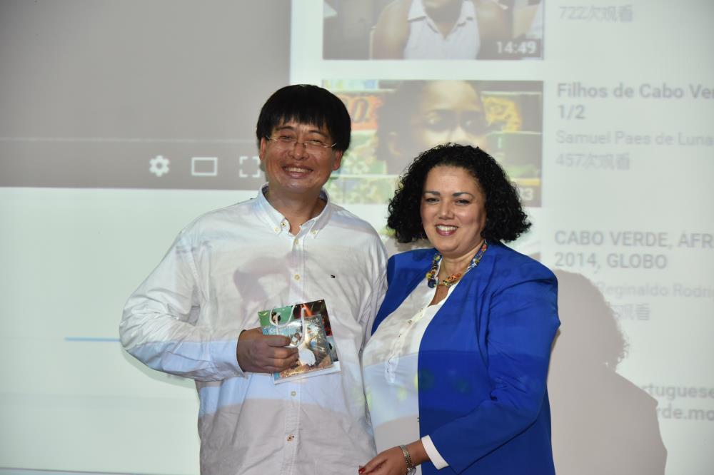最后,大使向我院郑超副院长和刘北光教授赠送了一份代表佛得角国家文化的礼物,郑院长向大使表达了感谢,并向同学们再次强调大使所讲到的:人类之间不应存在歧视,要平等对待,用文化交流。
