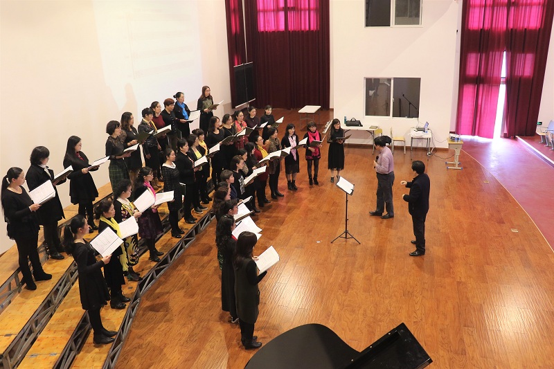 2017年3月11日,任宝平教授莅临我院讲学,对我院教育学院合唱团及北海各大合唱团进行为期两天的讲学指导。讲学前,任宝平教授带领我院教育学院的同学们进行清嗓热身训练。任宝平教授还对我院教育学院合唱团曲目《菊花台》的作品特征、演奏要点、处理方法等方面进行了详细的解说。授课中任宝平教授近身亲自指挥,手把手耐心细致地指导同学们。