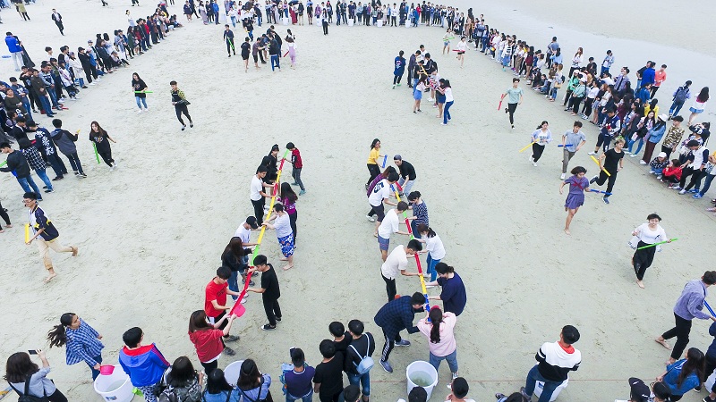 沙滩运动会暨沙雕大赛是我院一大特色品牌活动,今年已经是第17次举办沙滩运动会,第13次举办沙雕大赛。沙滩运动会是北海市,甚至是广西目前规模最大、影响最广的沙滩综合性体育盛会之一,目前每年4月份举办一次。沙滩运动会暨沙雕大赛的开展是我院积极组织开展了“走下网络、走出宿舍、走向操场”主题群众性课外体育锻炼活动的重要成果。并充分利用北海银滩的资源,发挥并结合我院艺术设计专业特色,锻炼大学生的思维能力,动手能力,并增加同学们的团队合作能力。