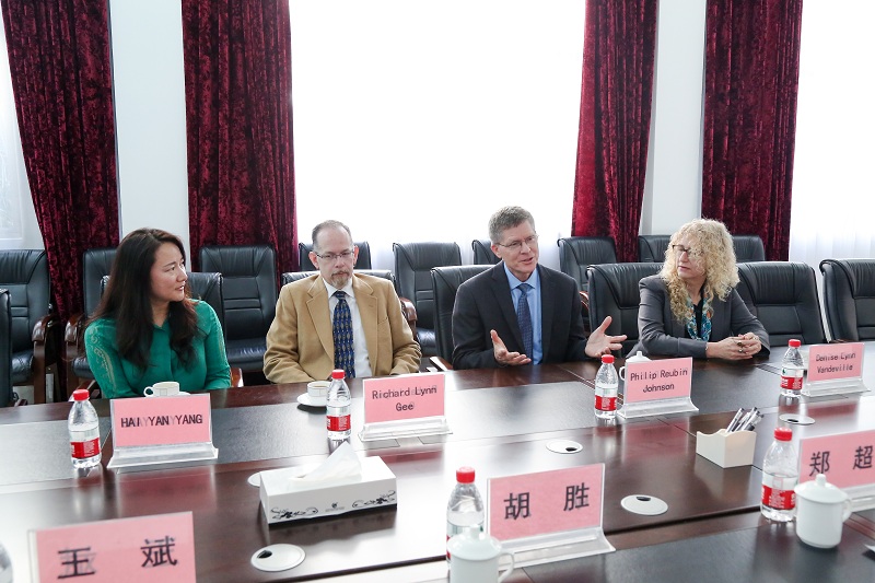 2017年11月11日上午,美国芬兰迪亚大学校长Philip Reubin Johnso教授一行4人到我院进行交流访问。我院副院长郑超、副院长胡胜、副院长王斌、副院长兼党委副书记林秀琪、副院长兼党委副书记彭仁等学院领导热情接待了来宾,并在东校区综合楼一楼会议室进行了会谈。