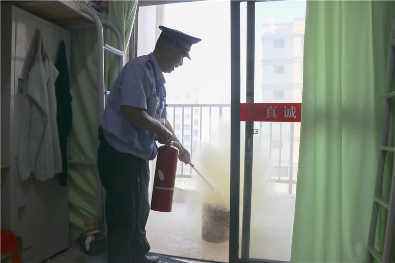 下午五点整,烈日当空,消防警报拉响,宿舍楼内冒出浓烈的白烟。保安人员立即赶往现场实施疏散和救援措施,学生们从宿舍楼内快速撤离,在老师和宿管员的指导下,同学们捂紧口鼻,以较规范的逃离姿势,有秩序的撤离火场。此时,救护人员及时赶到现场搜救被困人员。整个疏散过程,各部门紧密配合,所有人员在规定时间内撤离到安全救助点。