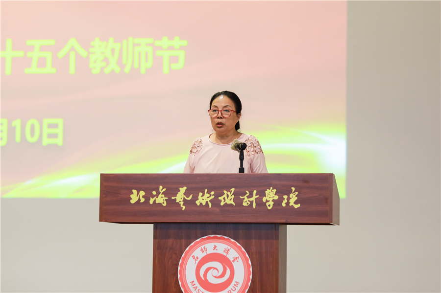 9月10日下午,北海艺术设计学院庆祝第三十五个教师节大会在礼堂举行。学校领导及全体教职工参加了会议,大会由副校长张建虹主持。