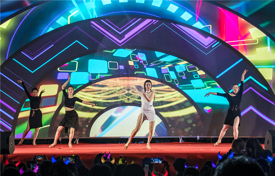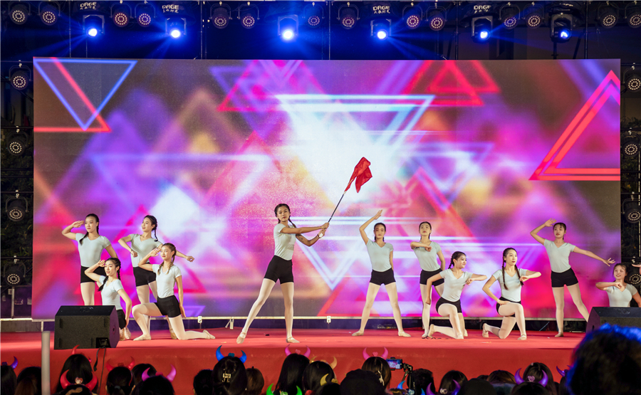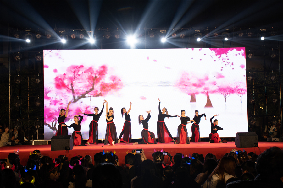 街头文化社演绎的舞蹈《重生》如凤凰涅槃、浴火重生。动感的旋律、酷炫流畅的配合、柔软的肢体舞动出生命的灵动与青春的活力;服饰20级和播音20级同学带来的诗歌朗诵《一梦敦煌》,渲染出古韵风采,舞姿翩翩若惊鸿,仿佛梦回遥远的敦煌令人陶醉其中。