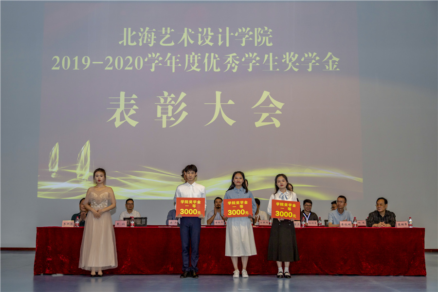 大会在雄壮的国歌声中拉开序幕,党委书记张阳宣读了表彰决定。与会领导依次为获得国家奖学金、国家励志奖学金、自治区人民政府奖学金、北海艺术设计学院优秀学生奖学金获得者颁奖。