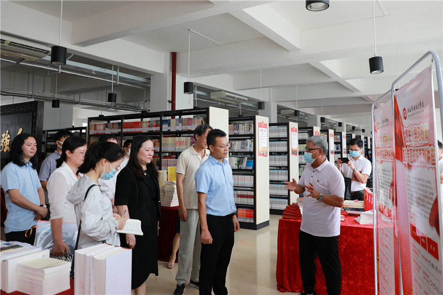 (黄卫平一行参观《中国共产党百年历程导读》展板和《唱支山歌给党听》视频)