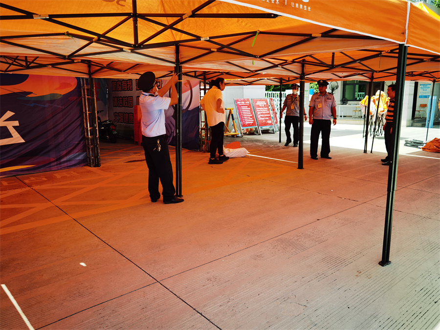 为进一步加强校园安全管理和疫情防控工作,提高安保人员的责任意识和业务技能,保障师生生命安全和身体健康,确保2021年秋季学期顺利开学,8月23日至25日,学校保卫处召开了开学前的准备工作部署会议,组织全体安保人员开展了专业技能、反恐防暴、消防救生等各项技能培训,同时也进行开学疫情防控知识和防控工作培训,在开学前做好校园卫生清洁、防疫标识更替以及迎接学生返校接待防疫布置工作。