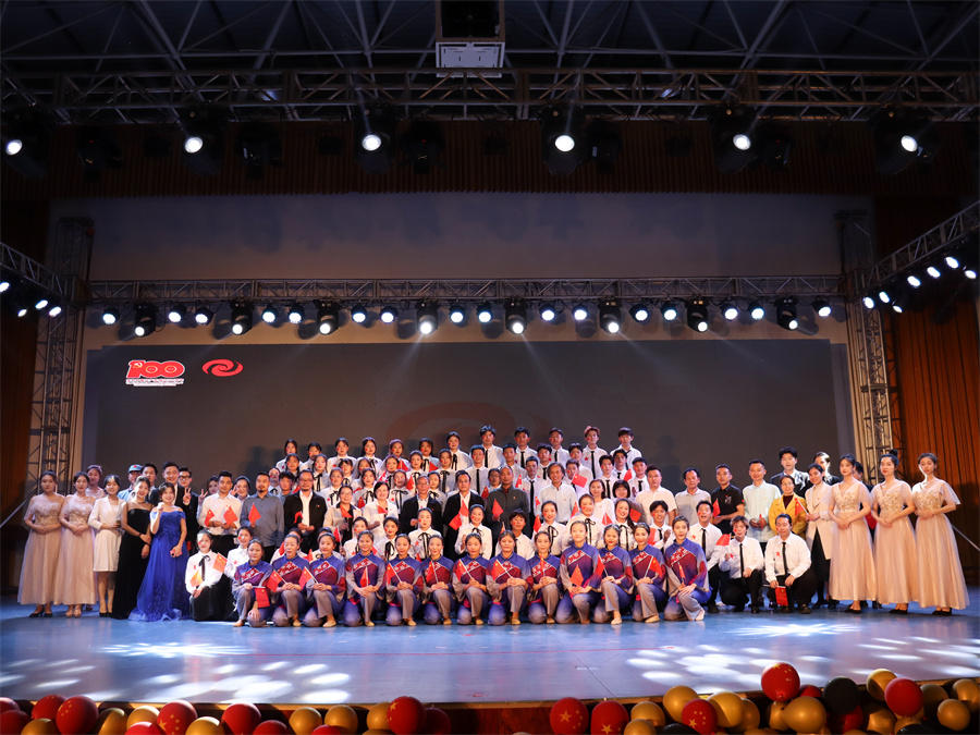 分享会在《唱支山歌给党听》的全场大合唱中落下帷幕,与会嘉宾和领导一同上台参与合唱。
