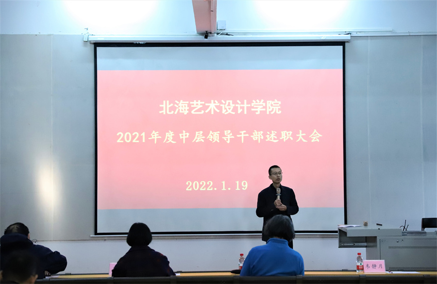 为全面回顾总结一年来的工作,深刻分析工作中存在的不足,总结经验,提高认识,明确下一步工作方向,1月19日,学校于西校区伦理楼107召开2021年度中层领导干部述职大会。学校党政领导出席会议,全体中层领导干部参加会议。会议由副校长黄侃明主持。