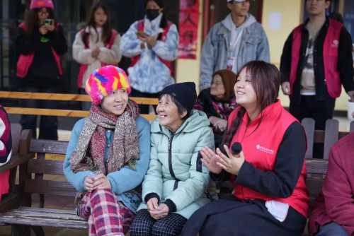 (志愿者与老人们一起唱歌)