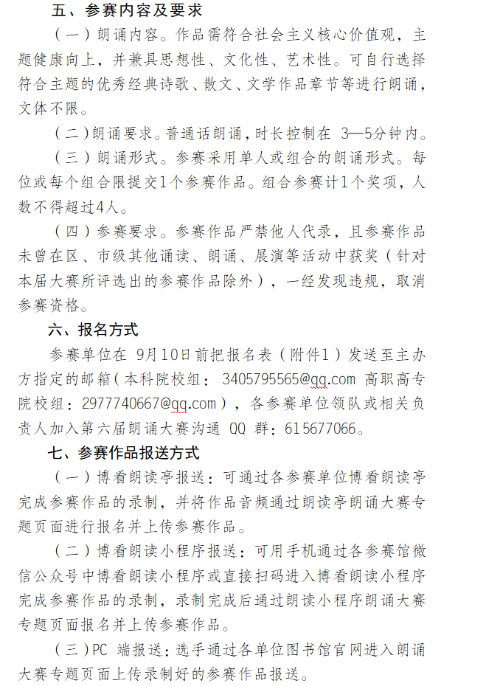 本次朗诵大赛具体内容附后,希望同学们踊跃报名参赛,请大家扫码提交作品!