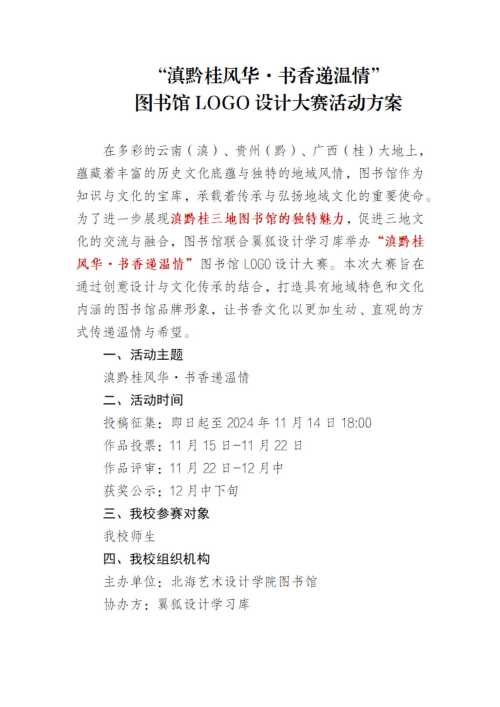 “滇黔桂风华·书香递温情” 图书馆LOGO设计大赛活动方案