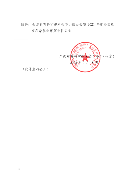 广西教育科学领导规划小组关于做好2021年度全国教育科学规划课题申报工作的通知
