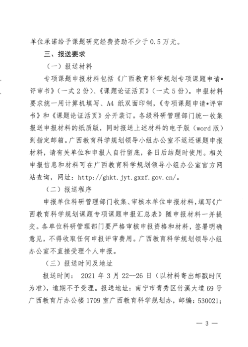 广西教育科学领导规划小组关于做好2021年度全国教育科学规划课题申报工作的通知