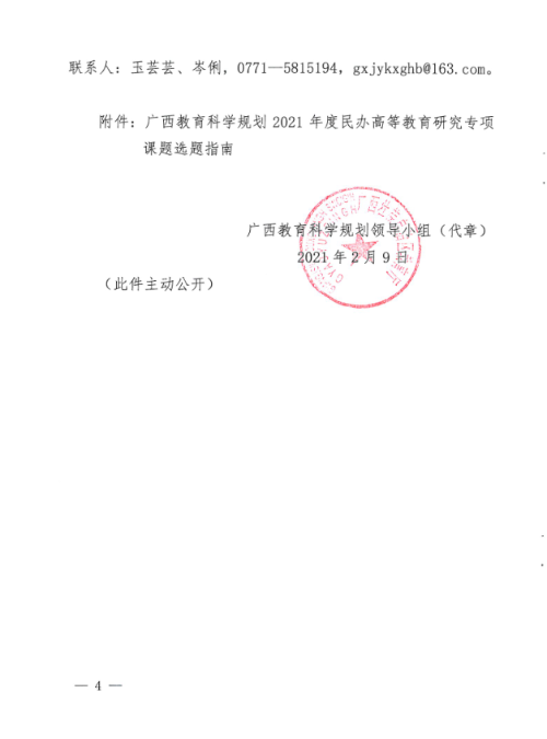 广西教育科学领导规划小组关于组织开展广西教育科学规划2021年度民办高等教育研究专项课题申报工作的通知