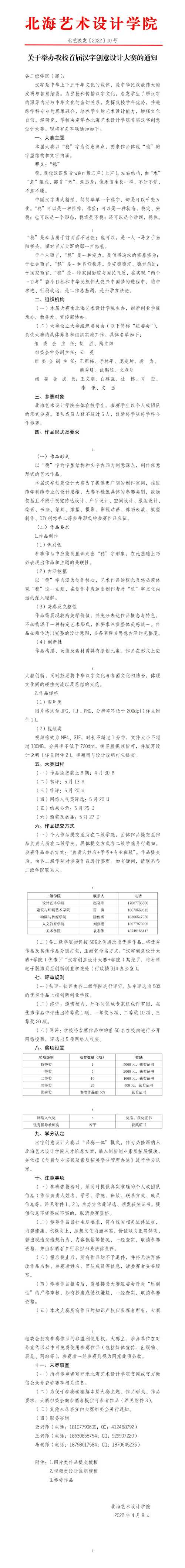 北艺教发〔2022〕10号关于举办我校首届汉字创意设计大赛的通知