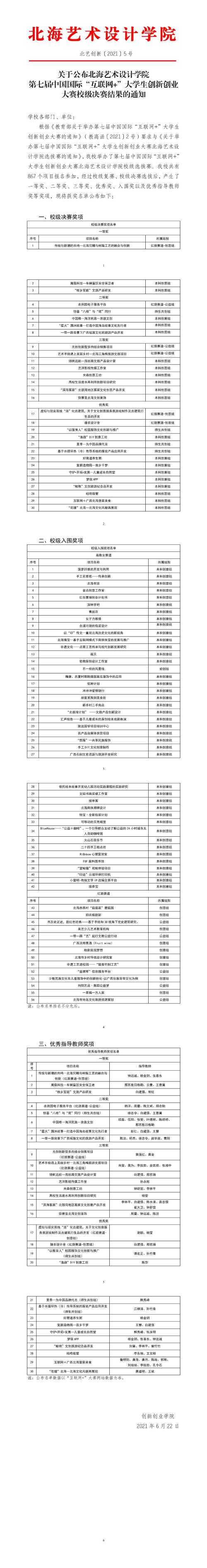 北艺创新〔2021〕5号关于公布北海艺术设计学院第七届中国国际“互联网+”大学生创新创业大赛校级决赛结果的通知