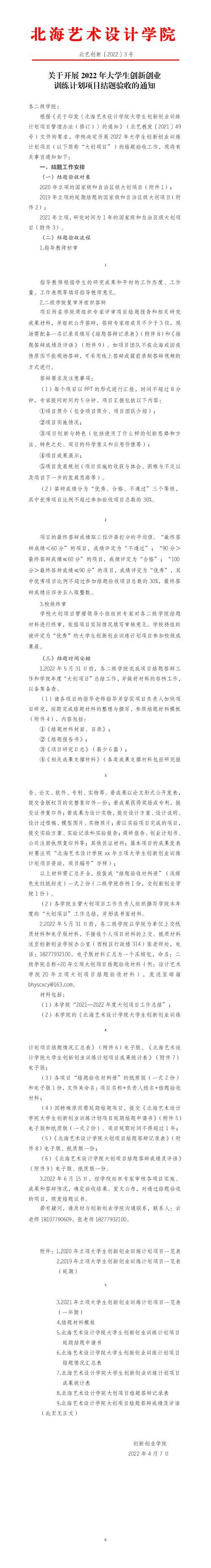 北艺创新〔2022〕3号关于开展2022年大学生创新创业训练计划项目结题验收的通知