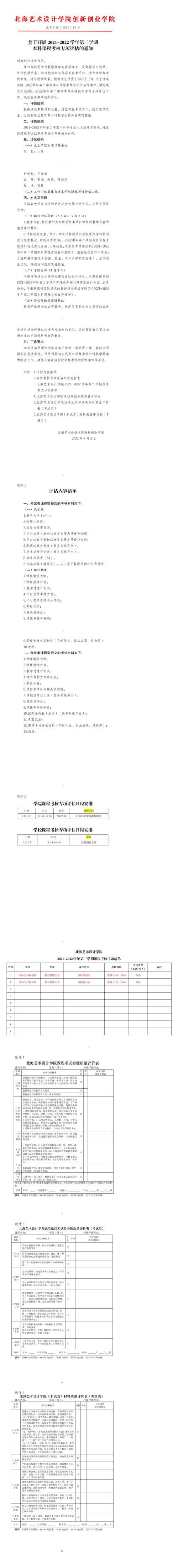 北艺创新〔2022〕14号关于开展2021-2022学年第二学期本科课程考核专项评估的通知