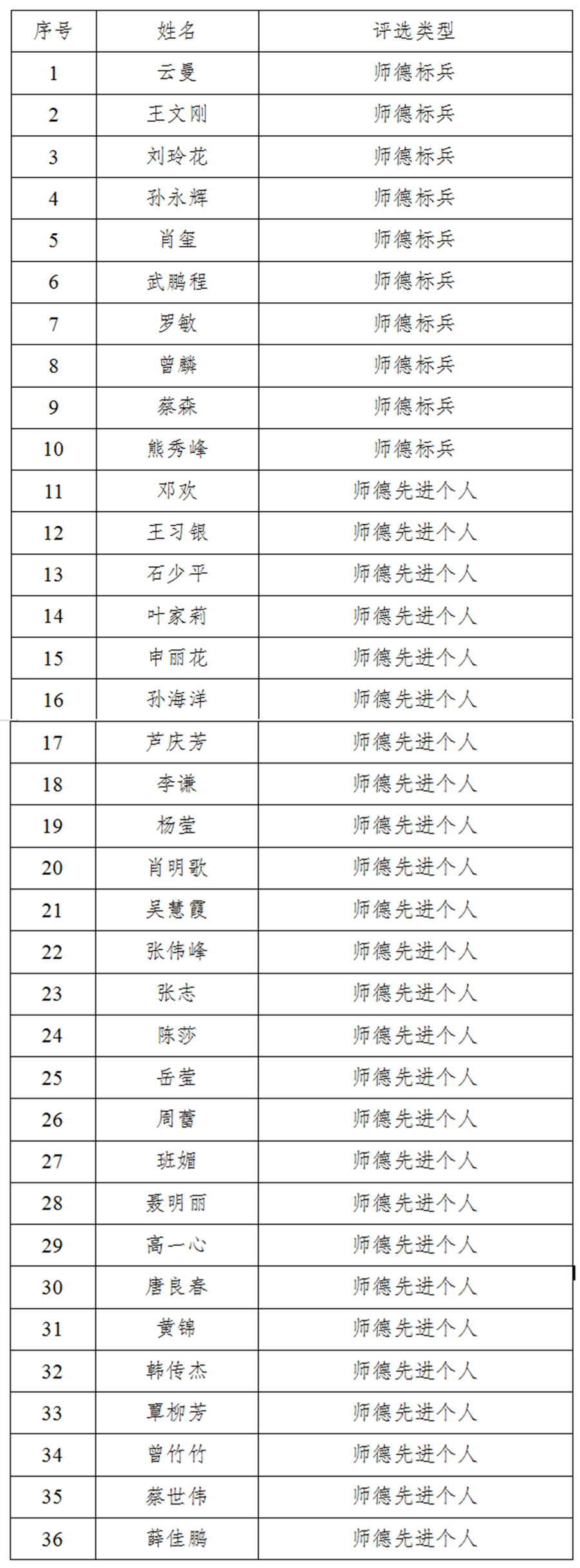 关于我校“师德标兵”、“师德先进个人” 评选结果的公示