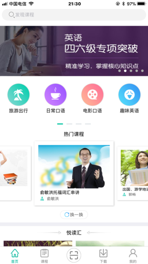 4、注册成功后跳转登录,进入首页, 即可开启互动口语学习精彩旅程。