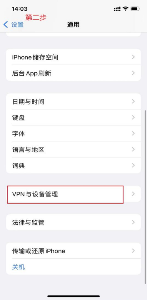 2、找到“VPN与设备管理”