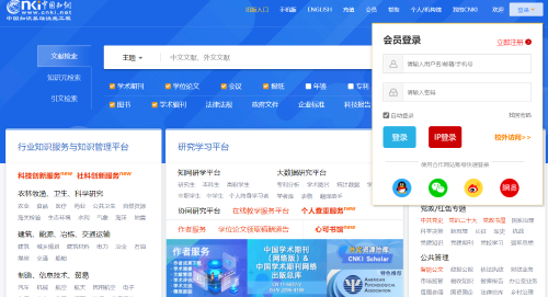 1、 使用漫游账号登录,访问数据库网址:http://www.cnki.net 。