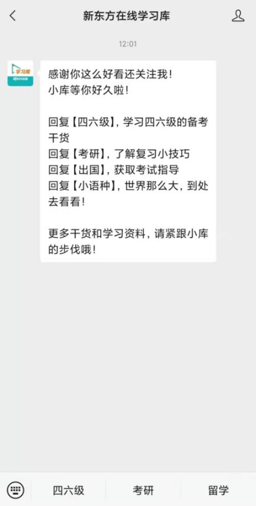 5、微信端:关注新东方学习库公众号:xdflibrary,即可开启微信学习。