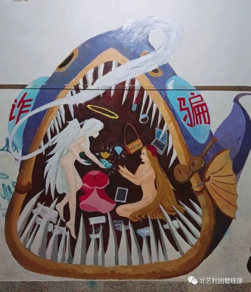 以“谨防电信诈骗”为主题的校园手绘墙在12月4号上新啦!