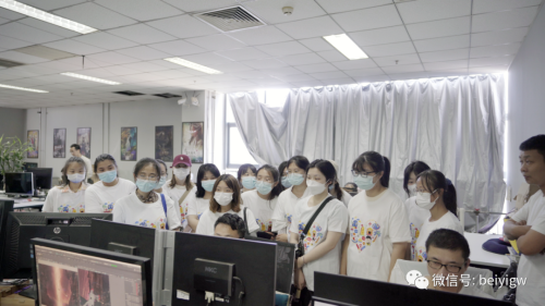 考察团一行先后对海纳文化的公司环境、人员架构、员工工作状态等进行实地考察,重点调研了公司发展现状、业务板块及人才需求等情况。在海纳三川文化传媒有限公司副总裁邢江峰的带领下,学生近距离观摩了影视项目后期制作流程,对各部门的工作运转模式有了更直观的理解和认识。