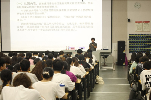 黄教授以其深厚的学术底蕴和丰富的实践经验,深入浅出地讲解了普通话的重要性、发音技巧及语言规范等方面的知识。讲座过程中,黄教授不仅理论讲解生动有趣,还与学生进行了互动,共同用普通话朗读经典篇章,现场气氛热烈,学生们积极参与,不仅锻炼了普通话口语表达能力,还深刻体会到了普通话的魅力。