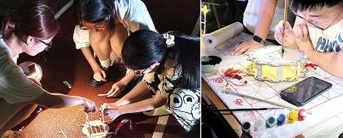 傍晚时分,学院分团委干事们在运动场布置好了活动点位,摆放的DIY灯笼随即吸引了众多路过师生的目光,大家积极参与到手工灯笼制作的活动中来。同学们在剪、贴、涂等制作过程中相互交流和沟通,呈现出祥和、活跃的节日氛围,随着各种创意灯笼的纷纷出炉,展示出我校学子不凡的动手能力和文艺修养。工作人员也始终活力满满,耐心为师生们做好服务。