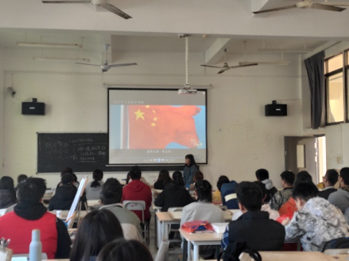 在本次活动中,团支书引出了这次的主题,使活动就此拉开了帷幕。之后继续由主持人向全体团员展示“青春心向党·建功新时代”主题团日活动相关PPT,并进行相关解说,在PPT的首页中就直接明了地向同学们展示了七十周年的大标题,在前言中强调了“青年兴则国家兴,青年强则国家强。正如习近平总书记所强调的,青年一代的理想信念、精神状态、综合素质,是一个国家发展活力的重要体现,也是一个国家核心竞争力的重要因素。