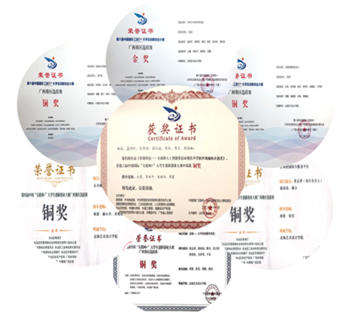 周蕾老师不仅有丰富的教学实践和研究经历,还擅于辅导和帮助学生参加各级各类赛事。仅近几年组织、指导学生参加的赛事就有15项,如:2020年8月,指导学生姚远参加第六届中国国际“互联网+”大学生创新创业大赛项目,荣获国家级铜奖;2020年10月,指导学生张志桓参加“第三届广西中华职业教育创新创业大赛暨第四届中华职业教育创新创业大赛,荣获广西区金奖;2019年,指导学生唐庆参加“全区高校第三届大学生创客马拉松”荣获自治区一等奖;2021年,辅导学生马丰杰创作的作品《石雕归墟》荣获广西壮族自治区委员会统一战线工作部主办第三届中华职业教育社非遗创新大赛广西赛区本科组第三名,并获国赛推荐资格。其次,辅导各级各类自治区级赛事银奖2项、铜奖13项。由于周蕾老师的辛苦付出、培育,让她收获了多项个人奖项和荣誉,如2021年,参加广西壮族自治区委员会统一战线工作部主办第三届中华职业教育社非遗创新大赛获广西区赛非遗教学成果团队二等奖;荣获自治区“优秀创新创业导师”和“优秀指导老师”、北海艺术设计学院“师德先进个人”、北海市青年创业创新“优秀导师”等荣誉称号。