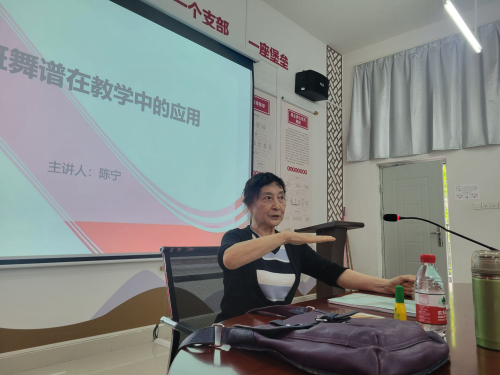 陈宁老师在交流会上作题为“拉班舞谱在教学中的应用”的讲座。陈老师指出,拉班舞谱是世界公认的一种既科学又形象并富有逻辑分析的记录体系,是迄今为止流传最广、也最为实用的舞谱。使用拉班舞谱进行舞蹈教学,教师可以更清晰地传达舞蹈动作的要领,学生可以更准确地掌握舞蹈技巧,从而加速学习进程。讲座过程中,陈老师亲自示范拉班舞谱教学实践,其示范准确、到位,感染力强。陈老师以生动的语言和流畅的动作,将拉班舞谱的精髓展现得淋漓尽致。与会教师们被陈老师的示范深深吸引,不由自主地参与其中,一同体验拉班舞谱的魅力。
