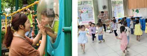 2301班洪梓欣与幼儿游戏                                                                        2301班缪仁文与幼儿阅读绘本